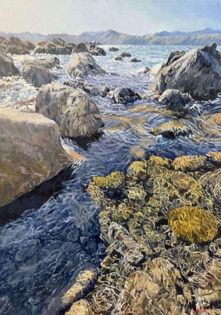oil on canvas size 740mm x 540mm with white tray frame