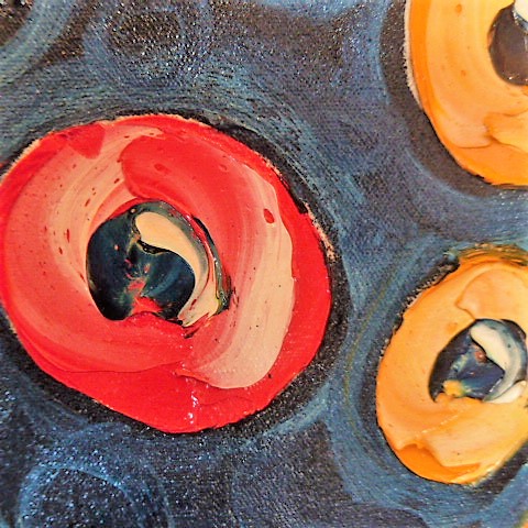 Oil on canvas size 640mmx 1400mm. Has horizontal and vertical strings attached, so could be hung either horizontally or vertically.
